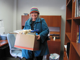 I cleaned out my desk, gave away office supplies to whoever stopped by, and left far too many mixed up pens and pencils in a bag in the supply cabinet. (Sorry - just toss 'em if nobody wants them.) I took the decorations off my door.