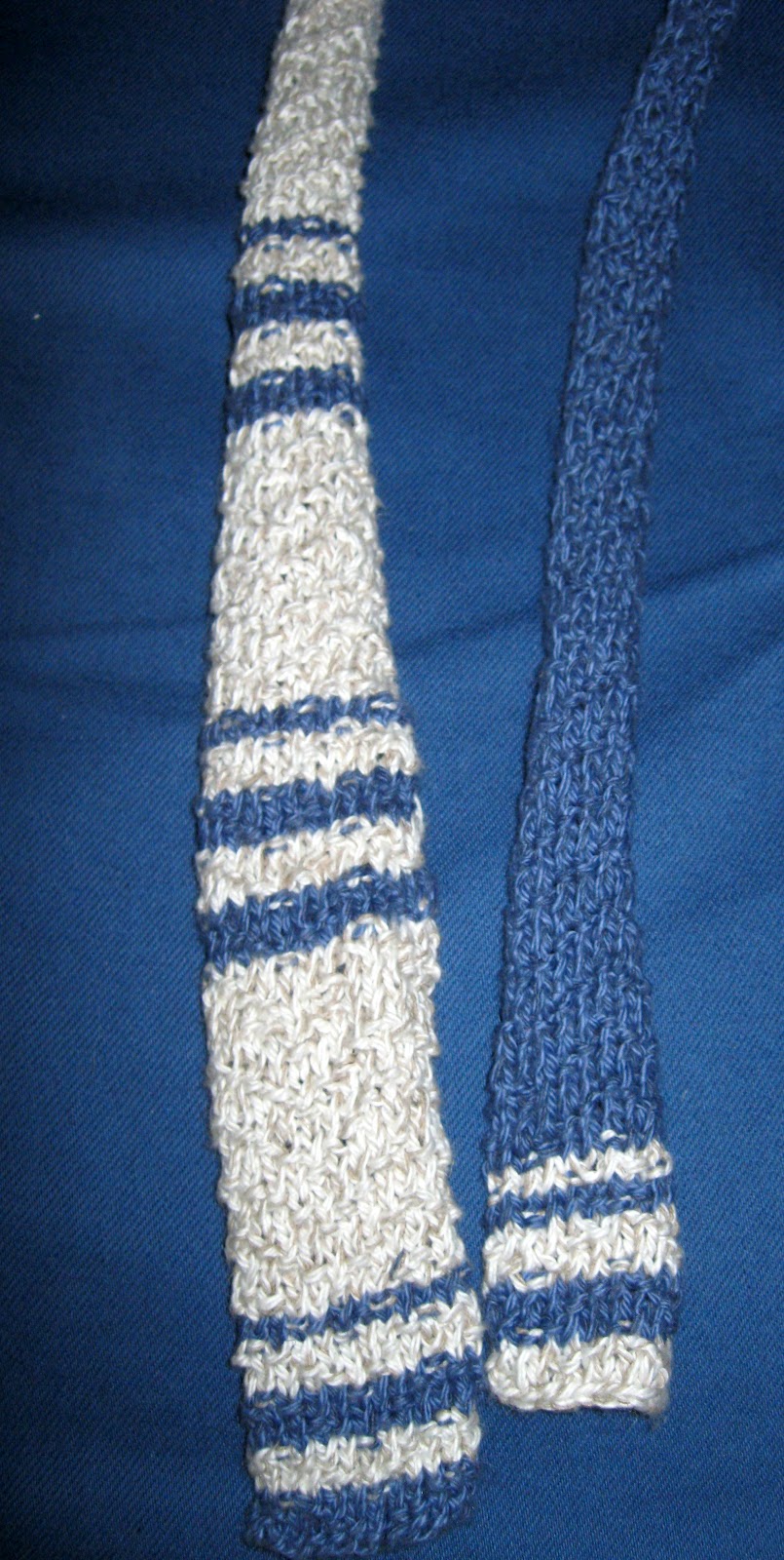 I can finally post photos of the iPad cover I made, because I also finished the accompanying project. Another tie! I've been asked to make one more (in something like the blue), but I have yet to get the yarn for it, being all out of the yarn shown here. It lasted through 1 hat and 2 ties and a few random bits here and there. That's pretty good.