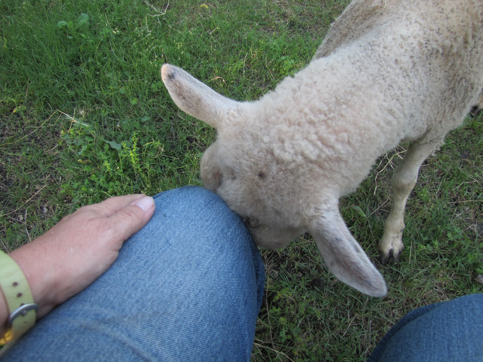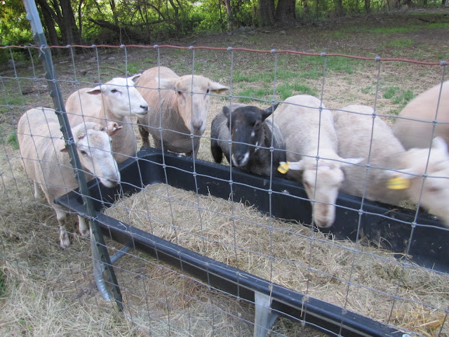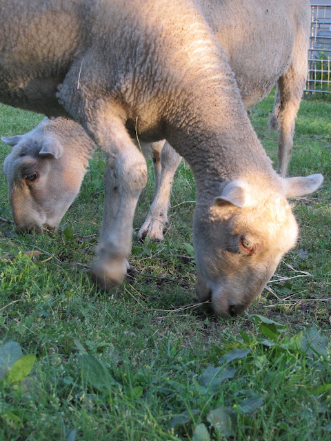 And now look at them. You can hardly tell them from their mom (in the middle). I spent some time with them in the pasture this evening, recalling our very rare lamb birth on this evening one year ago.