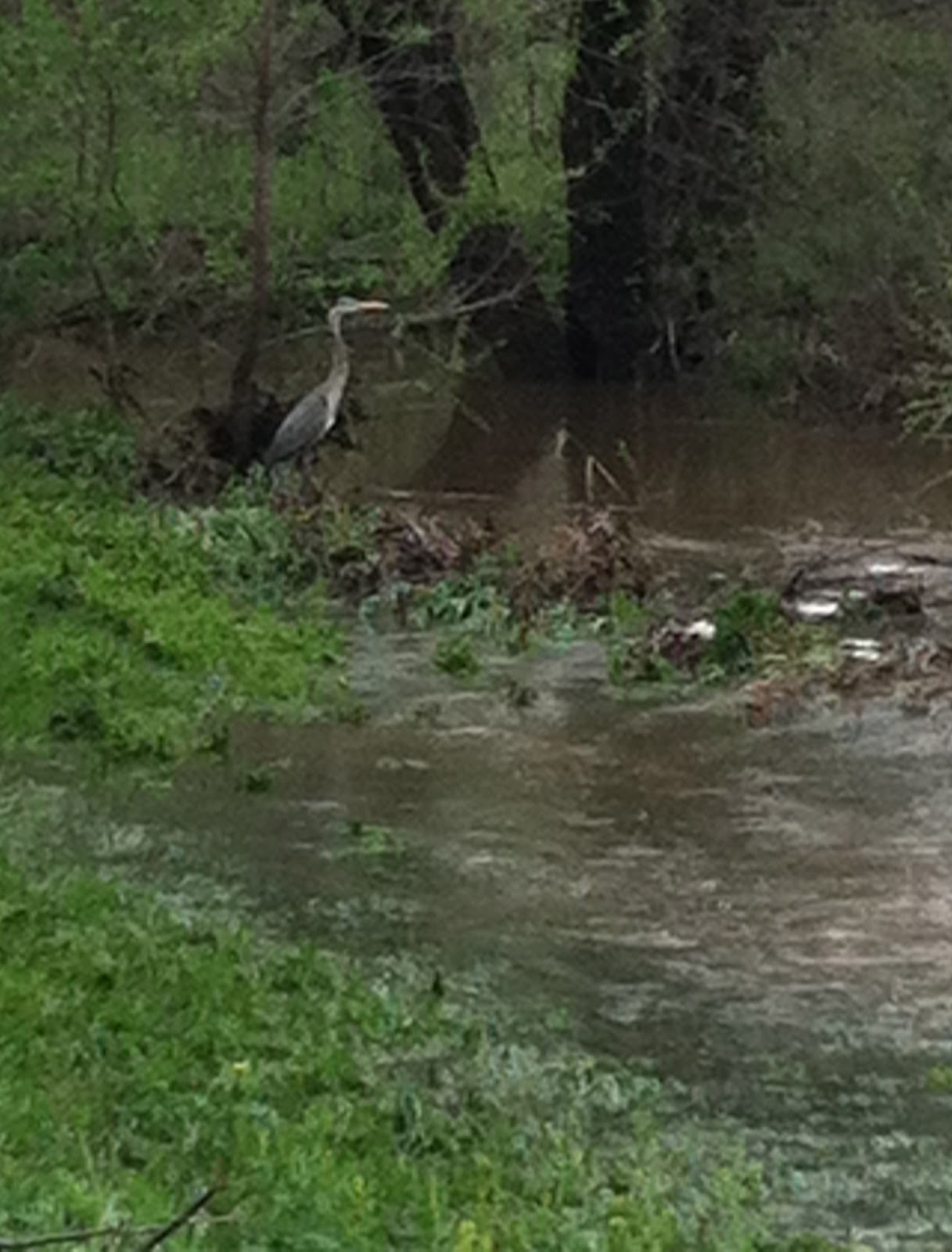 Earlier today we were paid a visit by another very large bird - a blue heron - who came to fish in our swollen creek.