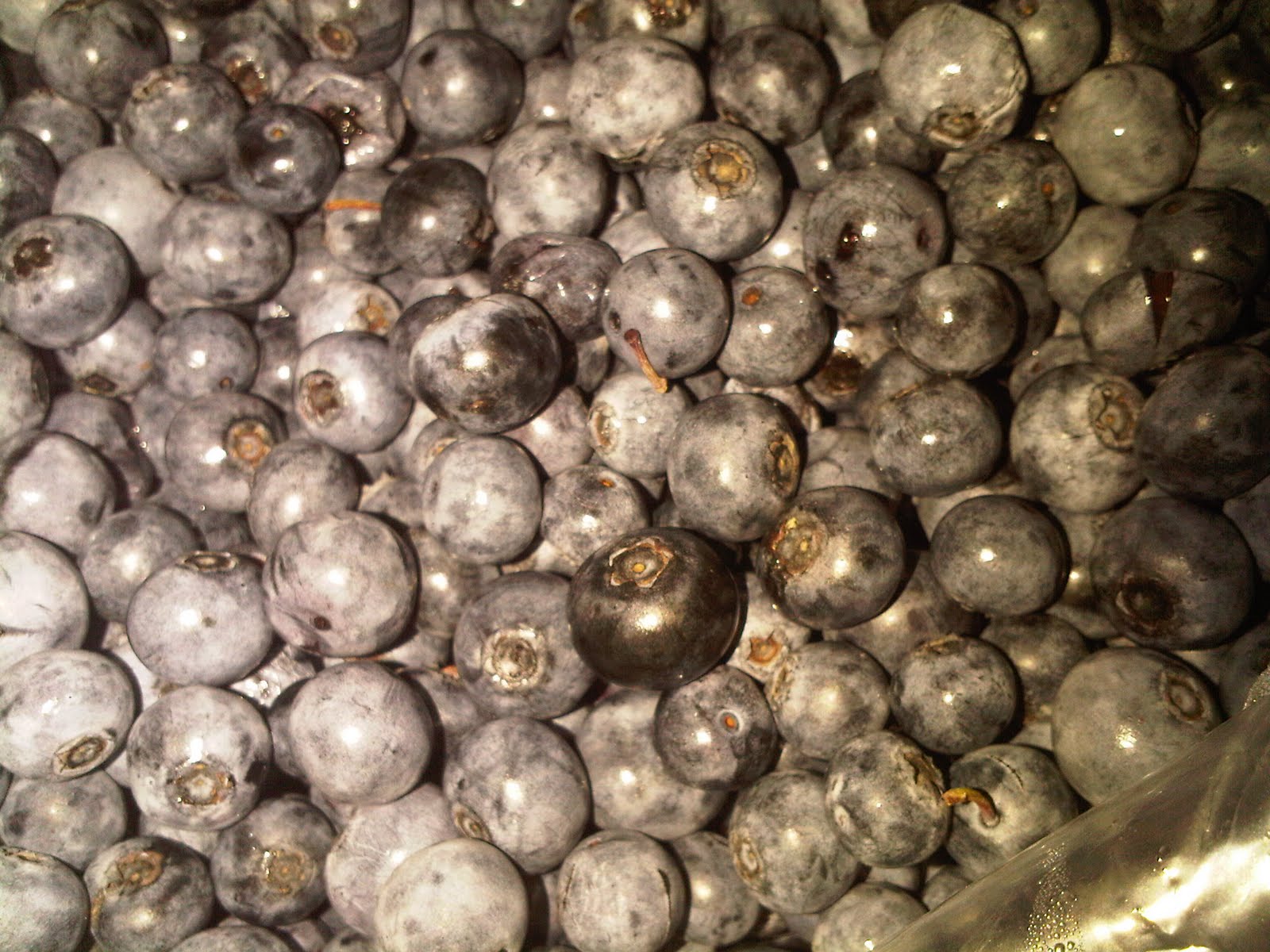 When I went to the The Little Red Barn last month, Jennifer and Claire brought a plate with watermelon and fresh, beautiful blueberries.  I later read Jennifer's blog and found out where she got her blueberries--she later helped me order some from Blueberry Hill Farms and I picked them up one day last week.  Rowan was with me when I picked them up and held them in her lap while we drove home.  Although I warned her about eating unwashed berries, her little lips were blue with them by the time we got home.  I had to agree that they were fantastic--so fresh, crisp, and organic to boot!