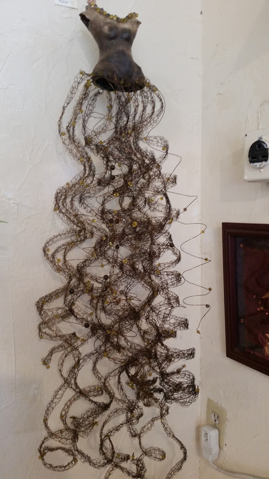 | There are LOTS of wonderful galleries in St Augustine. This is a piece that was in Amiro. This piece is an awesome example of Estella Fransbergen's work. Raku and wire. AMAZING. |