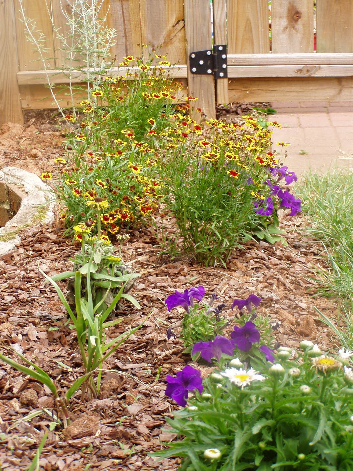 So this is our first spring and summer in our new to us house. I swore I would just care for the yard and manage what was there....but like usual I had to brighten it up and make it OURS. So through the 98 degree days we have been having (only 80s this week thank God!) I managed to accomplish quite a bit in the garden: