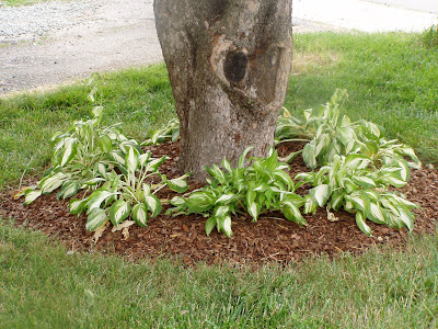 New hosta bed under our pink dogwood, all moved from the back yard where we have a ton more....