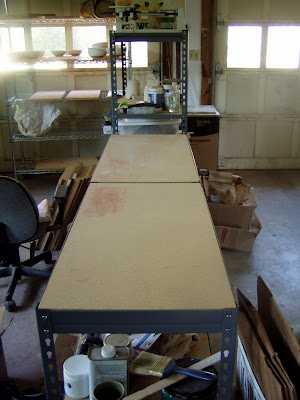 I only have one table to work on in my studio, and a small one at that. So my Dad and I came up with a plan, carried out by Dan the Handyman.