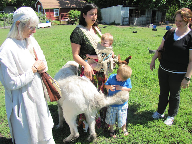After class, of course, we had to make the rounds in the pasture to say hi to all the critters, and were joined by Navayah, Jessica, Asher, and the baby.  Navayah raises sheep herself and we had so much fun comparing notes and swapping stories.  She and Jessica will be back for a spindle class soon so that she can better use her own wool.