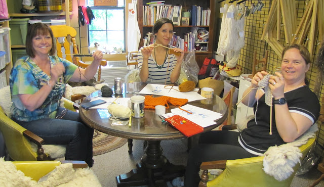 Breakthrough! Three new knitters overcame past challenges today in the LRB.  Dorinda, Monica and Emily succeeded where they had not before, and I'm delighted to say, left more confident in their brand new skills.  Awesome job!