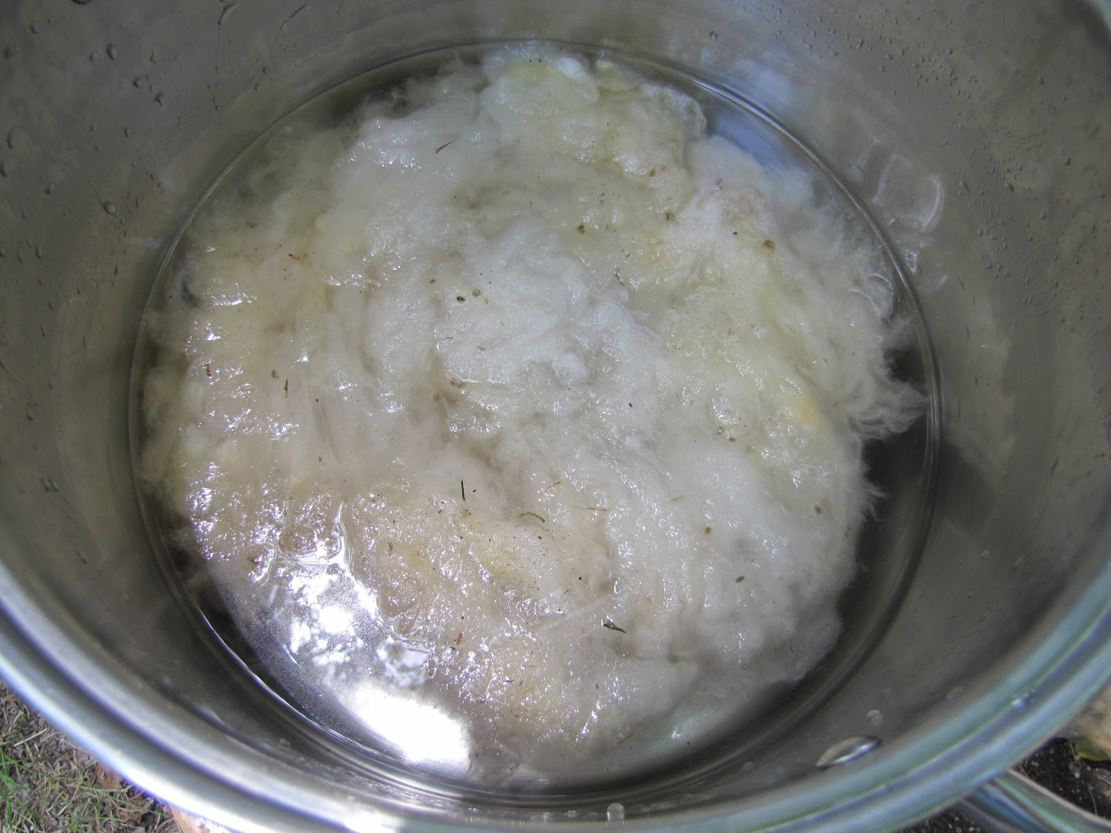 If one end of the error spectrum are nicks and cuts, then the other end of the spectrum is second cuts, which are short pieces of fleece that weren’t taken off with the first pass of the clippers. Second cuts cause all sorts of problems– if incorporated into yarn, they make it weaker, and cause it to pill more quickly– and so it’s important to keep them to a minimum. In fact, our instructors told us that we must not be so afraid of cutting the sheep, because, otherwise, all we’d do is make second cuts. I wasn’t so good at not being afraid (but, still, I nicked a few sheep).