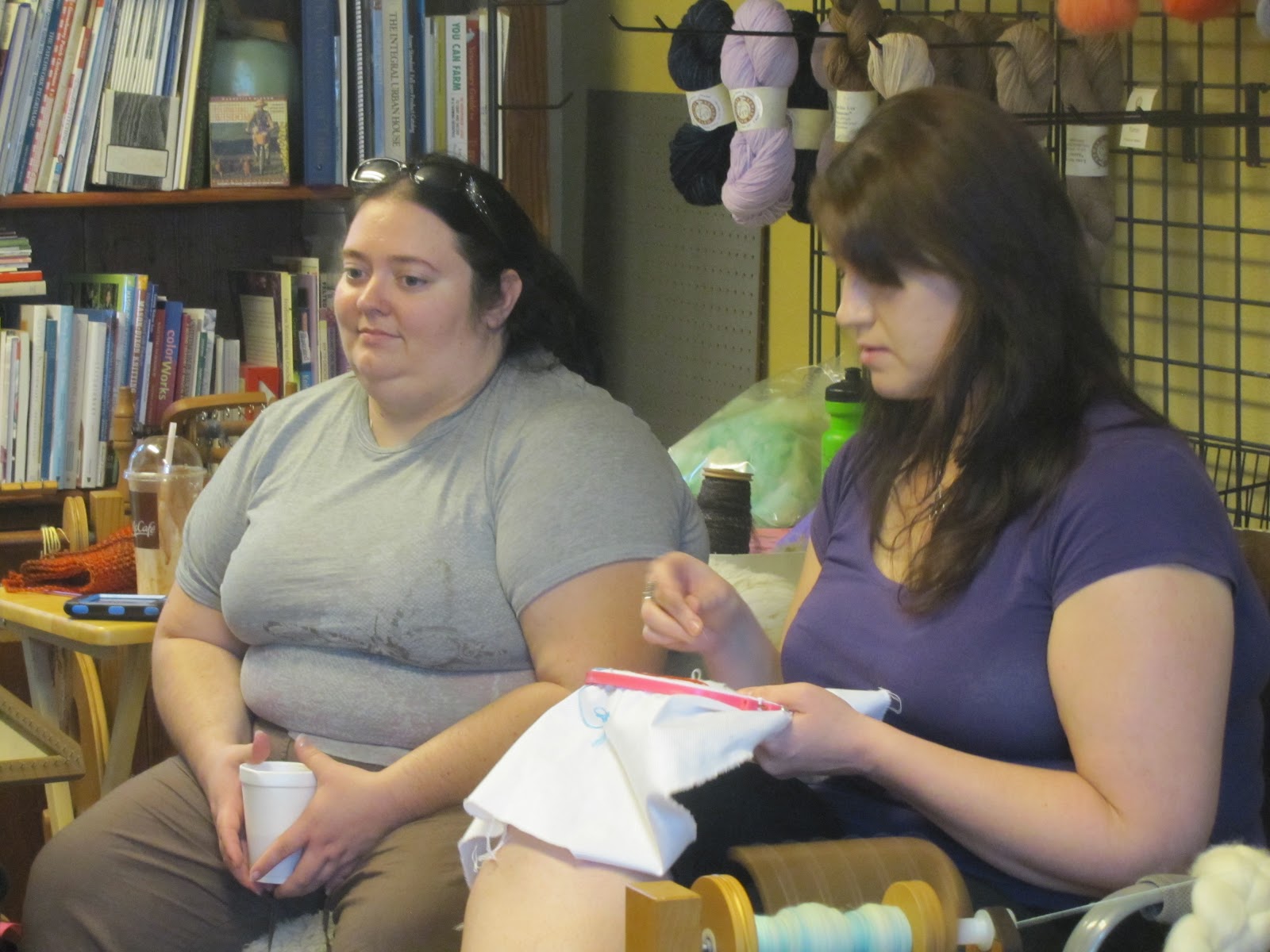 Lisa takes notes and Hilary spins alpaca.