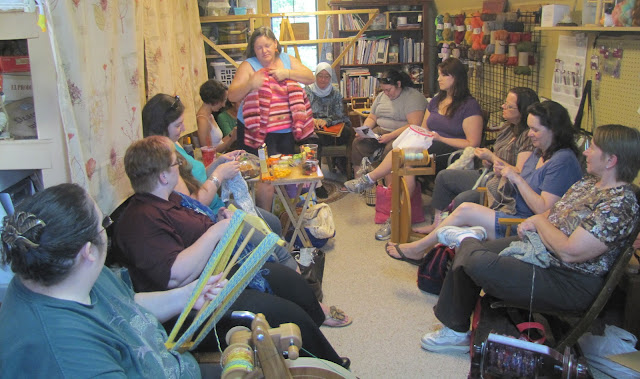In the meantime, we packed the LRB with an almost-record-breaking group of friends - some old-timers and some first-timers, and shared our common thread (get it?) by knitting, crocheting, and spinning together.