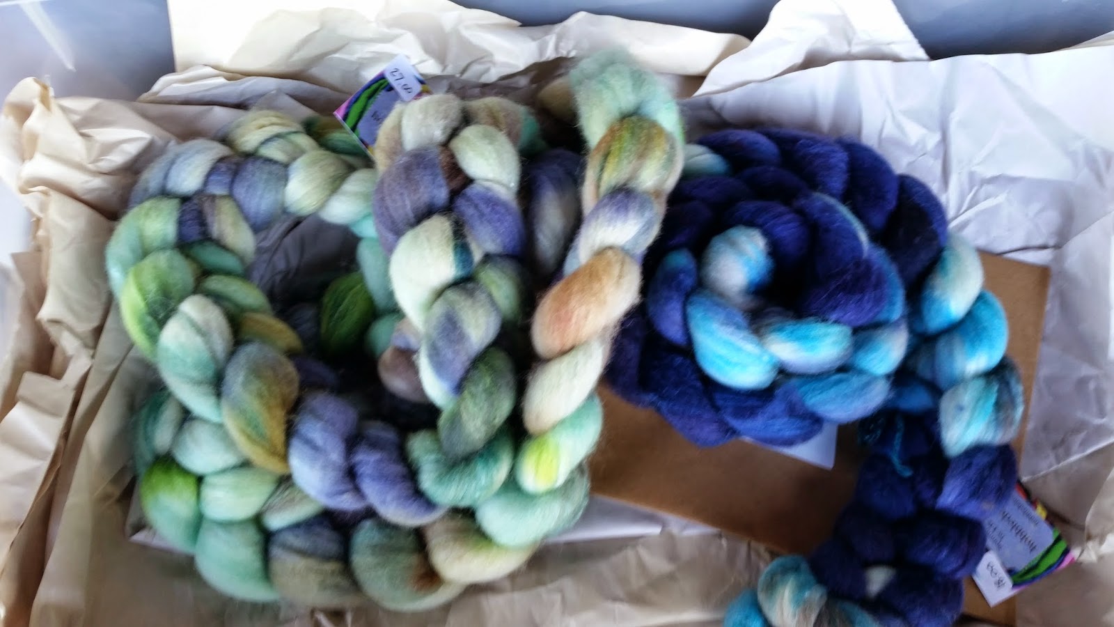 And despite how crazy busy I was I managed to do a little shopping.  This is polwarth/tussah silk from Hobbledehoy Yarn and Fiber out of Pennsylvania.  Yummy!  I can't wait to spin it up.