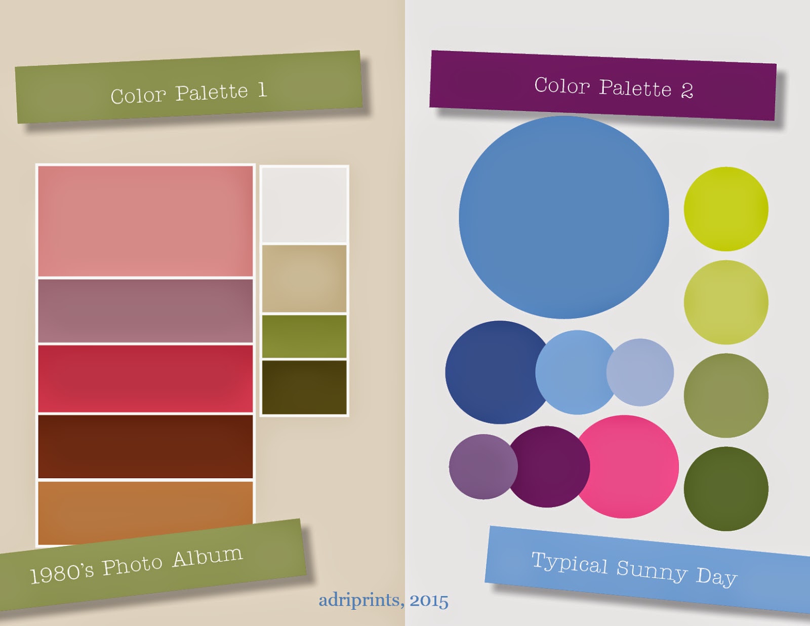 But first, an exploration in color. My 2 (preliminary) palettes with colors directly from my family photos...
