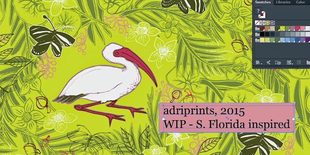 I first signed up for Bonnie Christine's Surface Pattern Design 2.0: Start a Career Skillshare Class in April, but I kept a diary of my process, and thought it would be nice to share with you all, my readers. This is Part 1 of 2 explaining my process behind the Floridiana surface patterns.