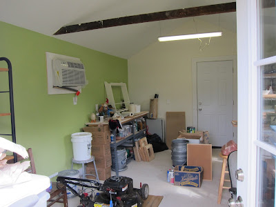 This is the same color I used in my studio in Charlottesville.  And while I only had enough for three walls I kind of like the look.  I am still thinking about what I want to do to the back wall, luckily it will be easy to access when I do decide.