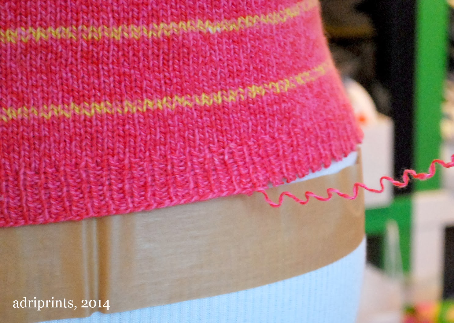 The colors came out much lighter than anticipated, but I'm still pleased with it. If I want super-intense colors next time, then I could mix larger quantities of color (more Kool-Aid packs + more just boiled water). But, this fairly non-toxic and relatively quick (with a knitting machine and microwave!) dyeing method appeals to me very much, and I think I will try it again in the future!
